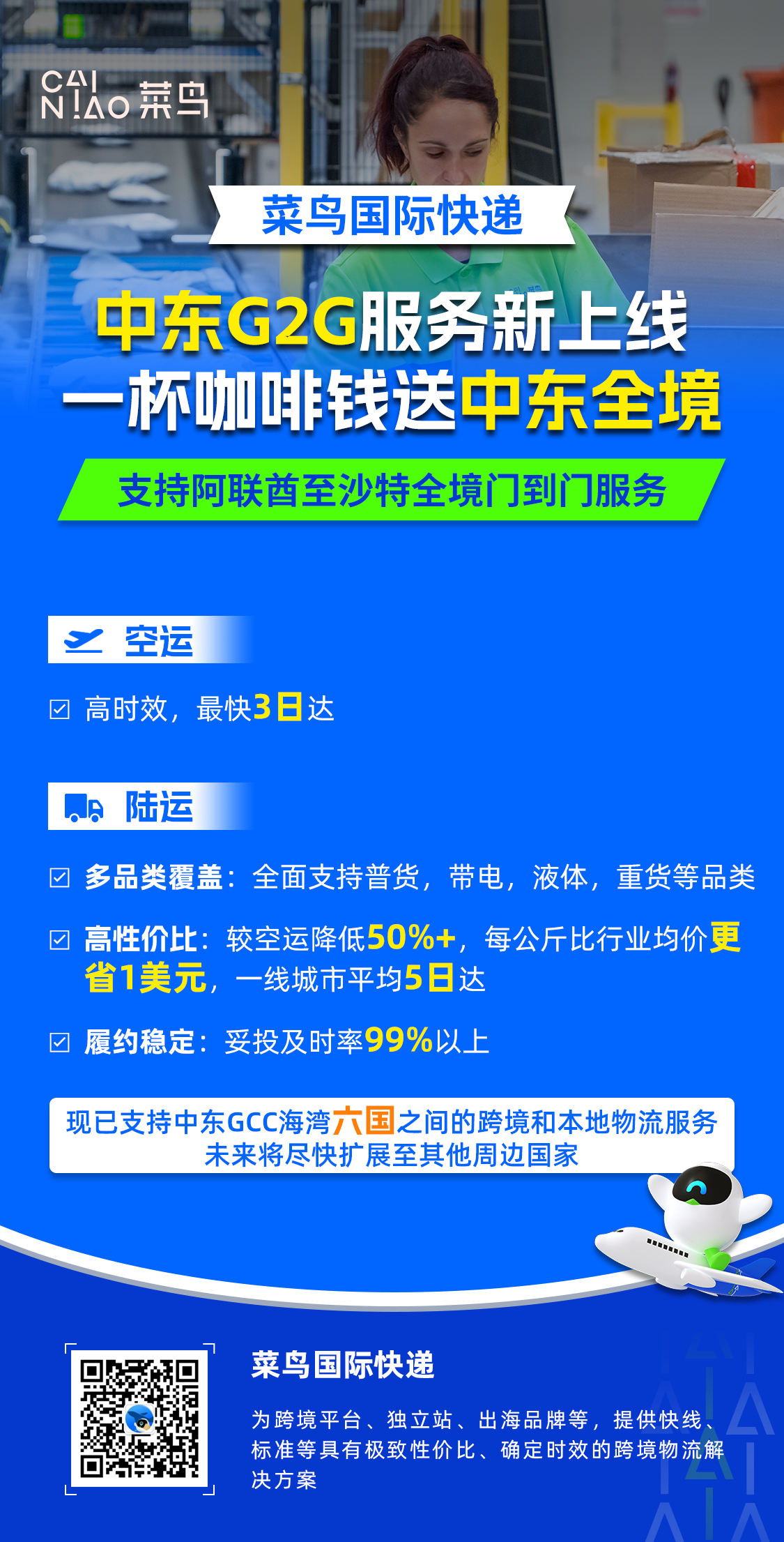 6月23日,菜鸟国际快递全面升级中东跨境物流服务,建立了中东海湾六国之间互发包裹的跨境物流网络,支持中东GCC海湾六国之间的跨境和本地物流服务,成为首家打通了中东海湾六国互发快递的全球性物流公司。“空运快时效+陆运高性价比”双轮驱动,灵活满足中国和中东本地电商平台及电商卖家的发货需求,以集中备货、区域分发的模式,全面降低跨境物流成本,助力商家提升本地市场竞争力。