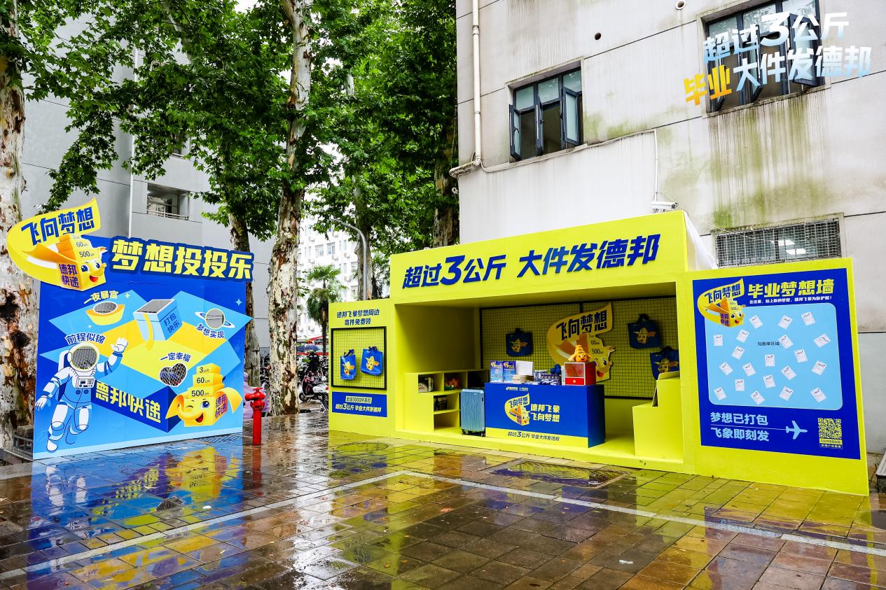 在深耕服务的基础上,德邦快递更加注重毕业季给予毕业生的精神力量。今年 “毕业寄”主题是“德邦飞象,飞向梦想”,展示着德邦快递拳拳托举心,助力毕业生朝着梦想起飞。6月19日-6月21日,德邦快递在武汉大学内设置了巨型快递箱快闪店活动及丰富多样的学生互动玩法,如:投沙包游戏、拼图游戏等,旨在丰富学生毕业生活;学生可通过现场寄递扫码获得专属福利,包括德邦快递周边精美礼品:带logo的水杯、签字笔、记事簿等。行李寄递发货还有抽奖活动,最高可得华为平板、外交官行李箱等奖品。德邦快递用真实福利与暖心服务,冲淡毕业的离愁别绪,为圆满毕业增添了一份意外惊喜。
