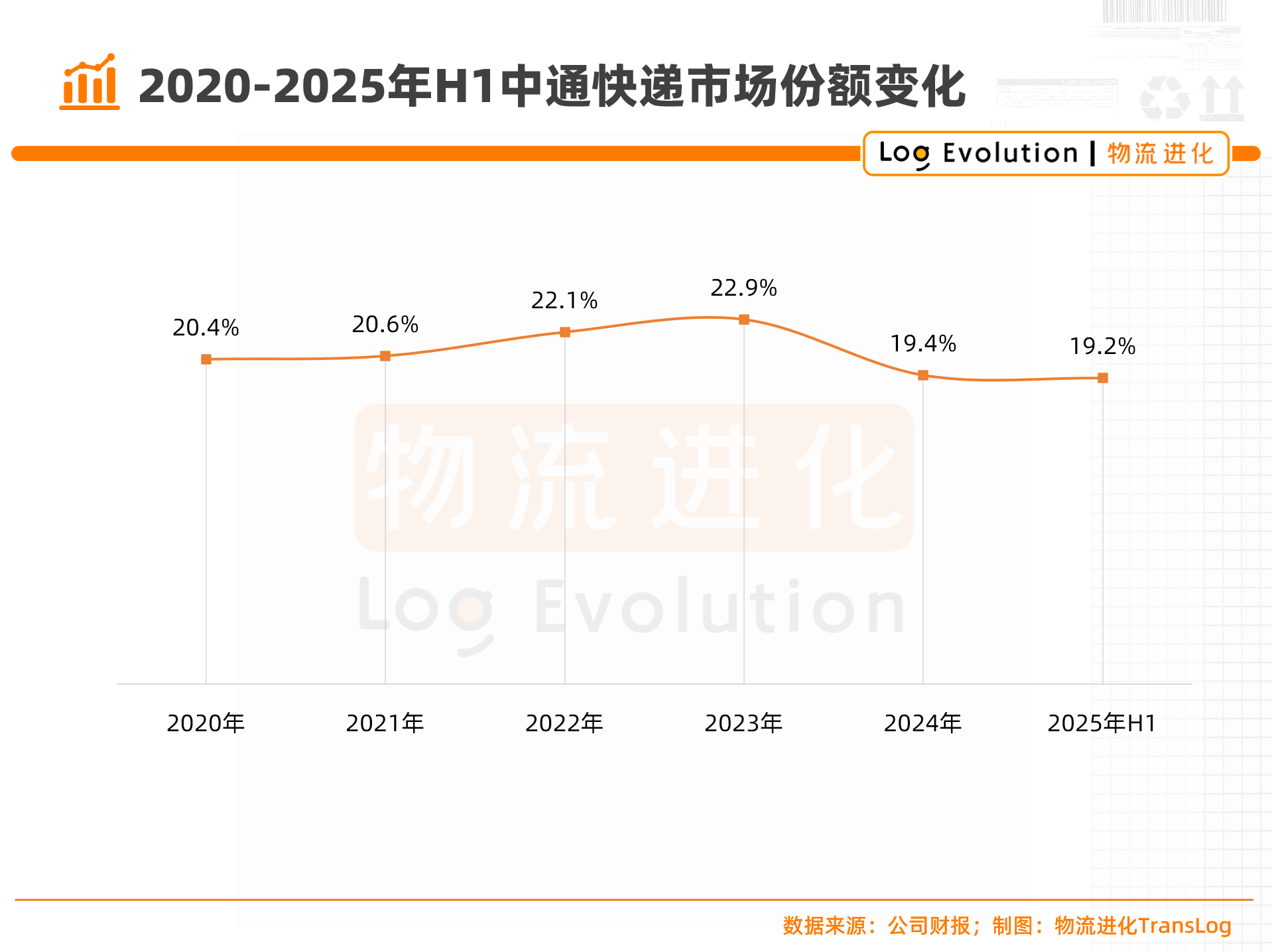 要知道,在2020-2023年这四年时间里,中通快递的市场份额都在20%以上,而2024以来,中通的市场份额回落到了20%以内。