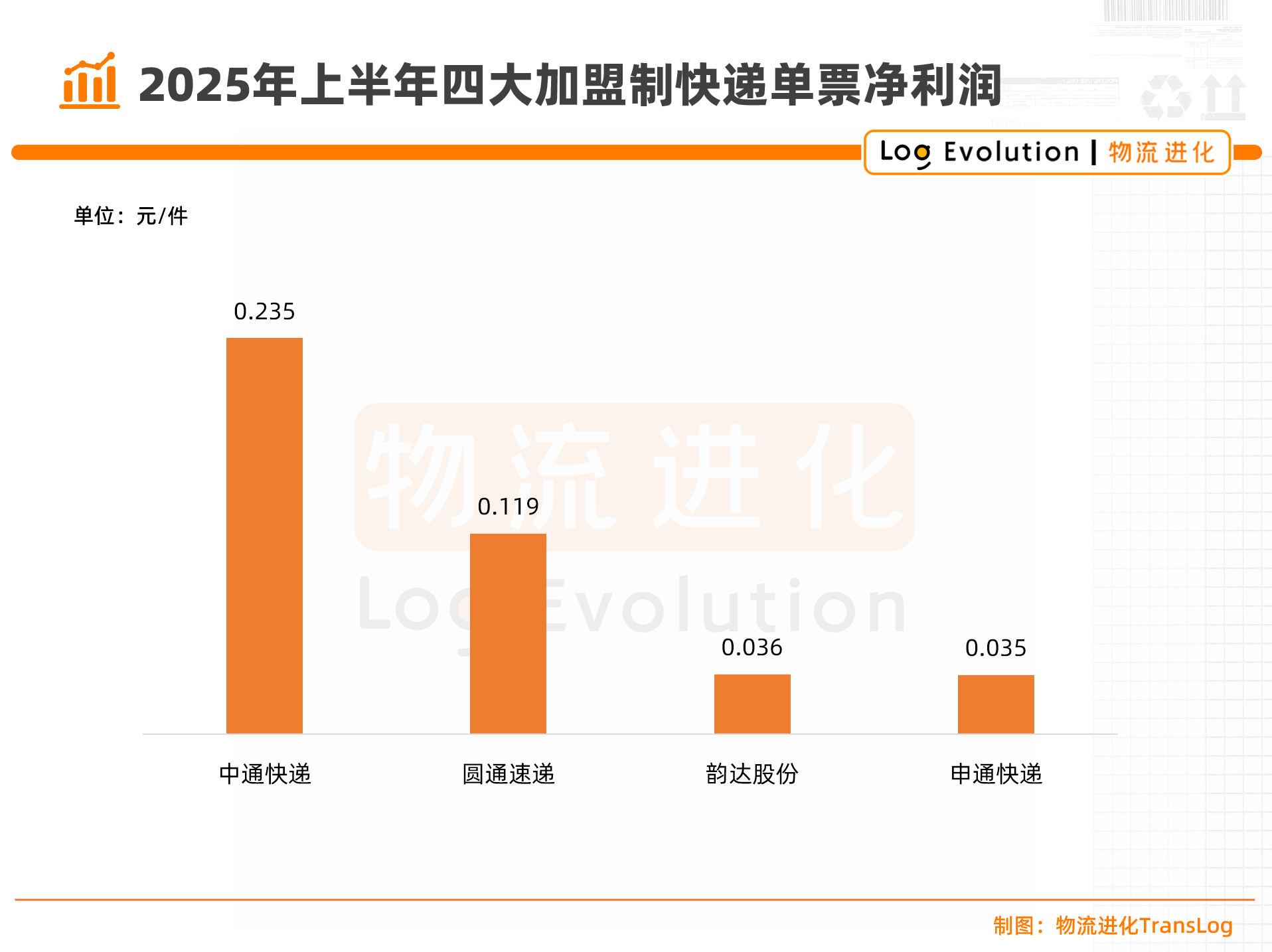 其中,中通单票利润为0.235元/件,圆通单票利润为0.119元/件,韵达单票利润为0.036/件,申通单票利润为0.035/件。