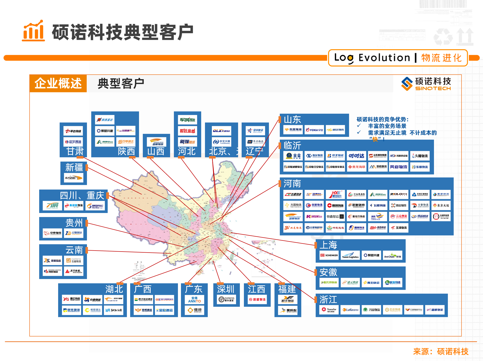 据物流进化了解,硕诺科技服务的供应链物流客户数量超过100+家,年运费总额超过200亿+,其中年营收过亿元的客户超过50+家,服务客户覆盖供应链合同物流、综合型物流平台、区域零担、专线等。