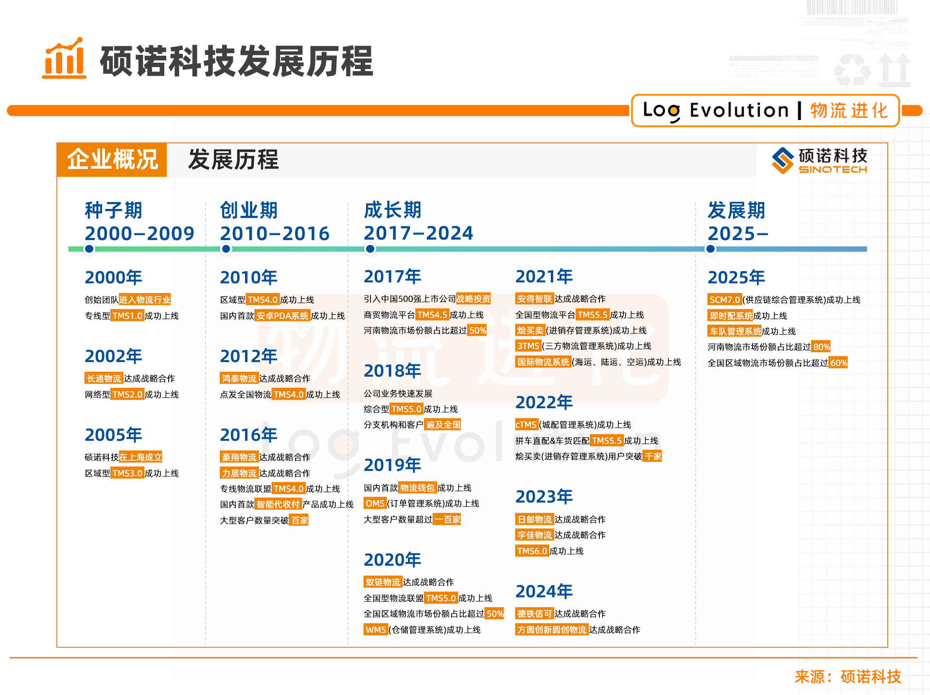 从2000年开始到现在, 25年左右的时间里,硕诺科技从物流到商流,经历了行业从野蛮式增长到精细化运营的过程,也深度参与了行业的数智化转型。