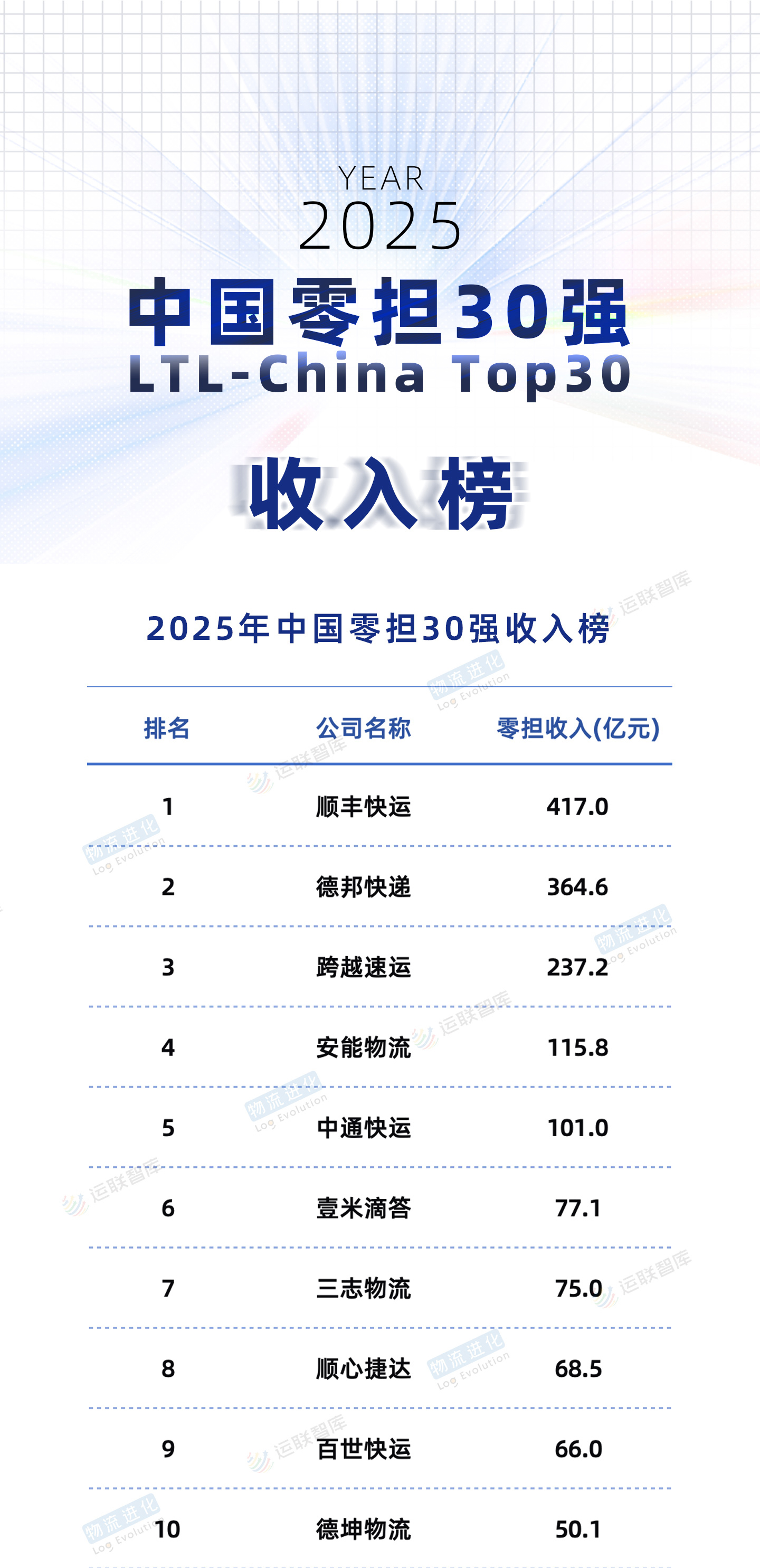 并购后,企业战略上的区别,正在形成零担市场的新格局。在物流进化TransLog发布的《2025年中国零担企业30强》排行榜中,上述并购案例涉及的企业,已经常年稳定在前十强当中。