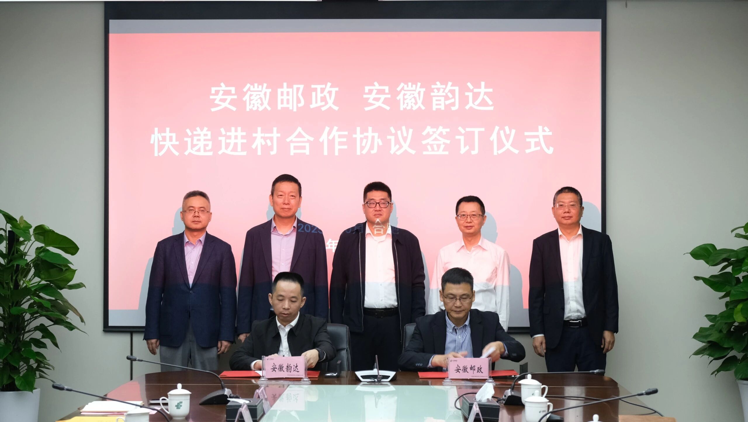 韵达安徽省公司与安徽邮政举行快递进村签订仪式。