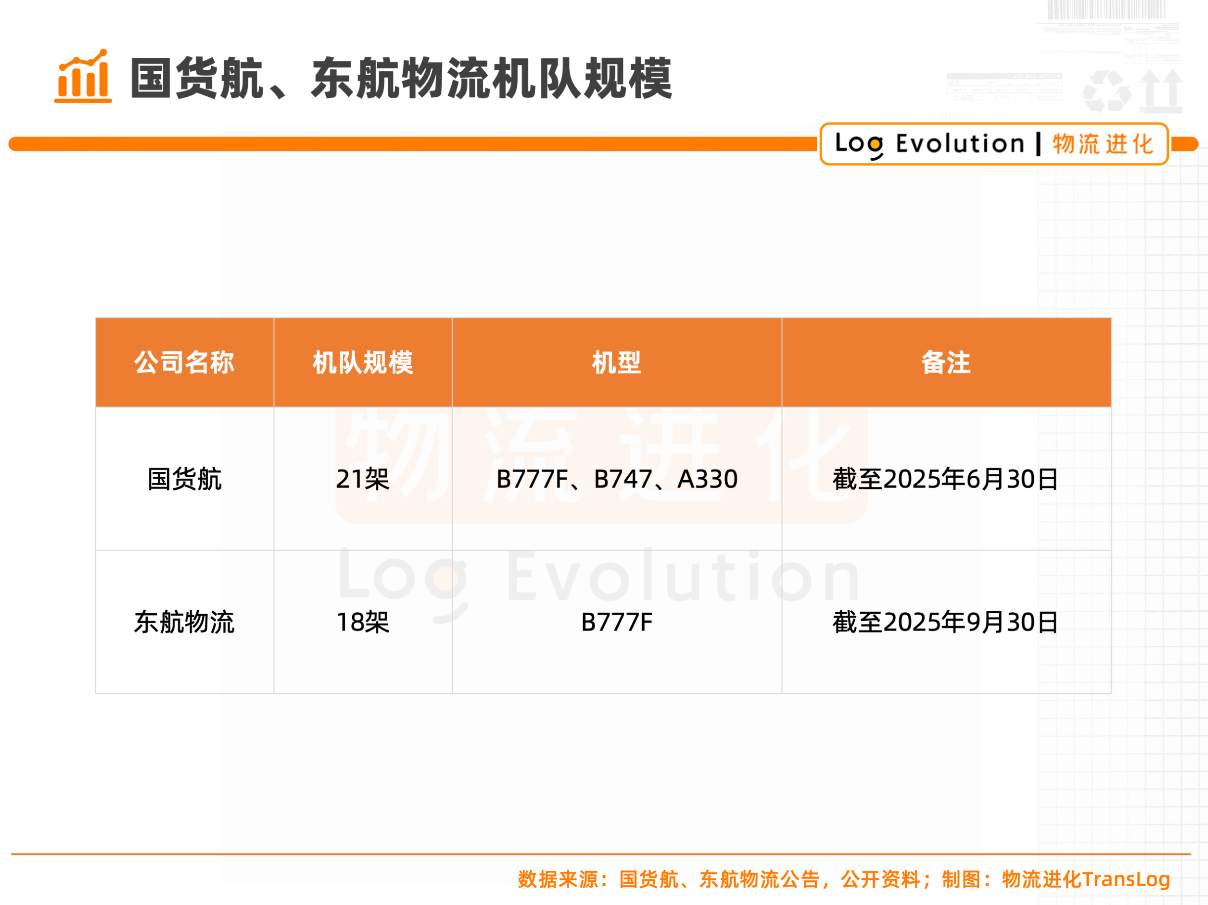 值得注意的是,东航物流全部采用B777F机型全货机;而国货航的机型则更多元,包括B777F、B747和A330,其中B777F占主力。