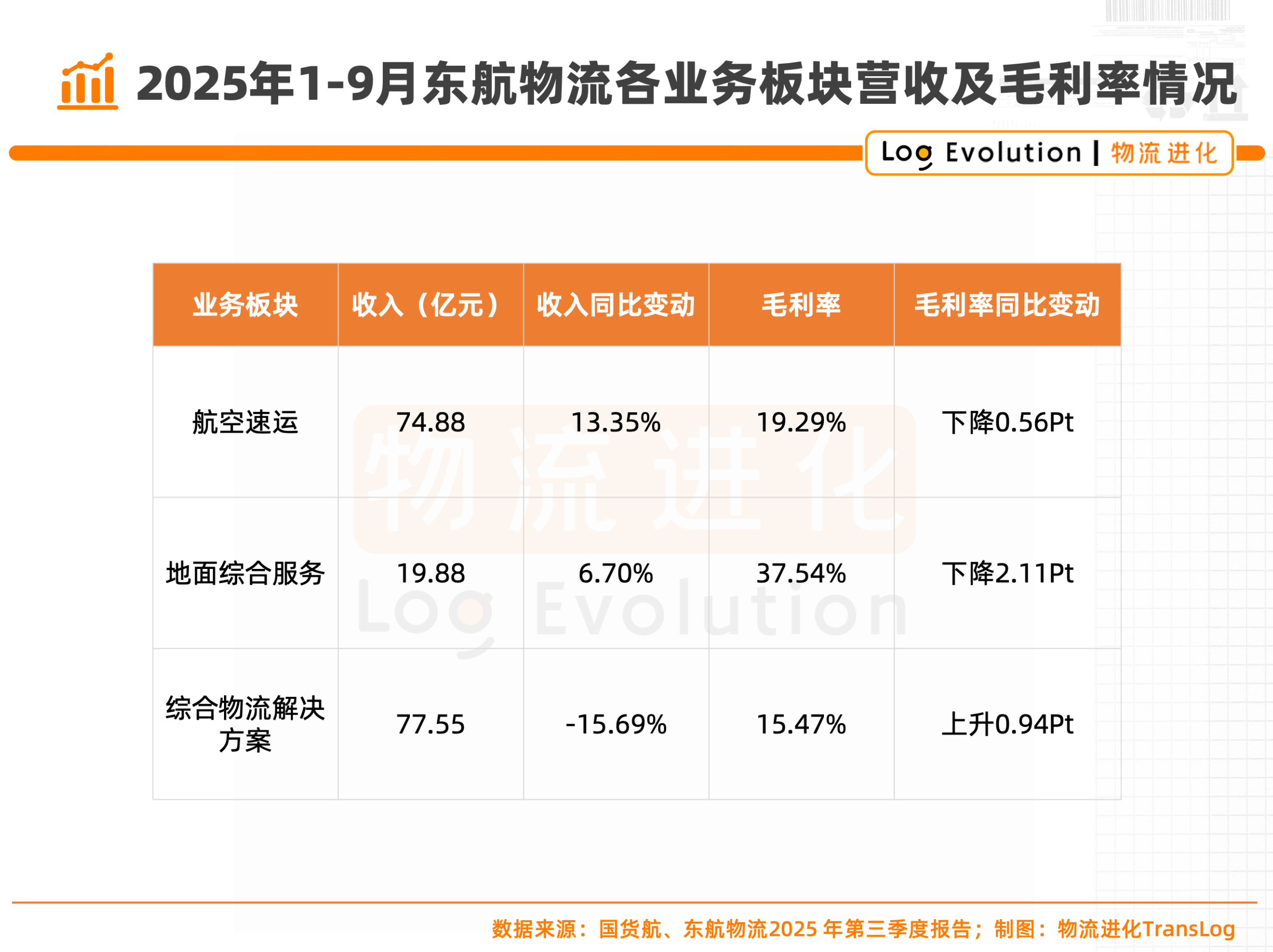 针对综合物流板块收入降幅较大,东航物流在投资者问答中回复称:受美国关税政策以及小额包裹豁免条款取消的双重影响,电商平台美线出货量出现下降,公司前三季度跨境电商板块业务收入较2024年同期有所下滑,造成了综合物流板块收入的下降。