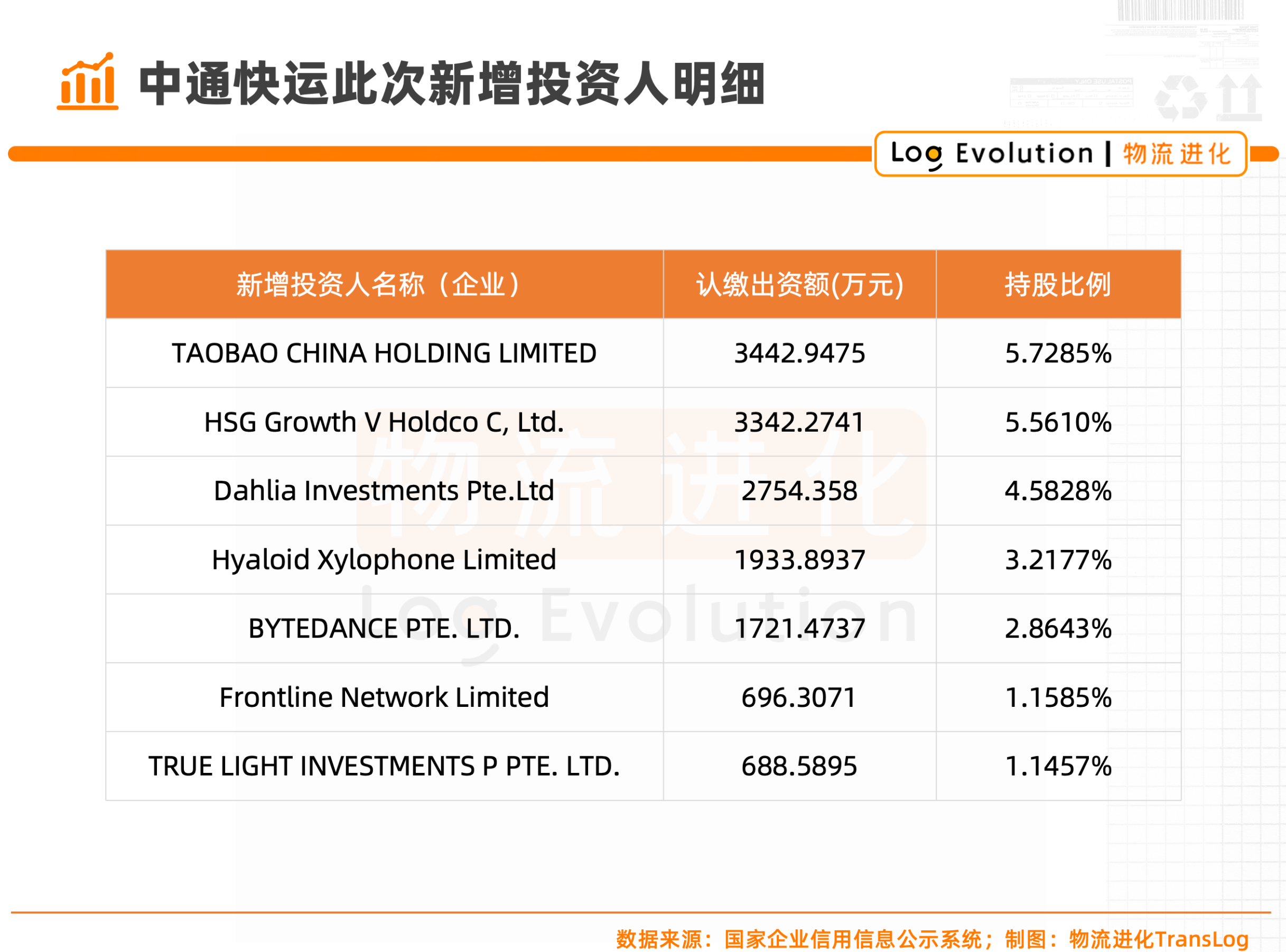 11月6日,中通供应链管理有限公司(以下简称“中通快运”)完成工商变更,注册资本由4.2亿元增至约6亿元。