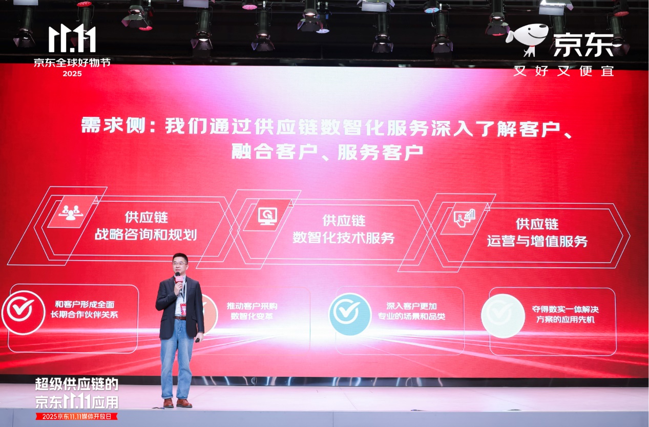 11月11日,2025京东11.11媒体开放日在北京举行。作为一家以供应链为基础的技术与服务企业,京东的发展与创新紧紧围绕“供应链”这一核心,基于二十多年来锤炼的供应链基础设施能力,以科技创新助力现代化产业体系建设,展现超级供应链的京东11.11的应用成果。