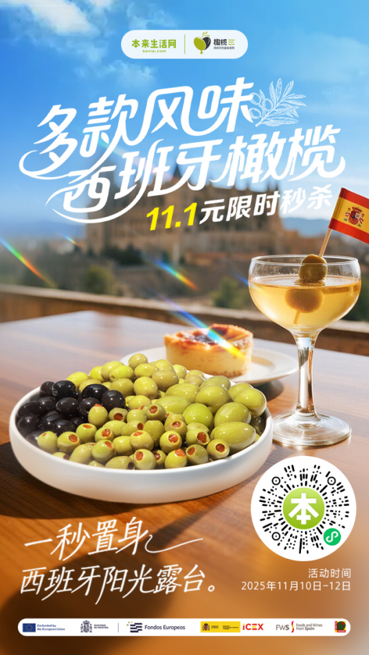 11月10日,本来生活携手由西班牙对外贸易发展与投资局(ICEX)和西班牙食用橄榄行业协会(INTERACEITUNA)共同资助的“橄榄·西班牙的超级食物” 推广项目,正式开启为期一个月的西班牙橄榄专属活动。