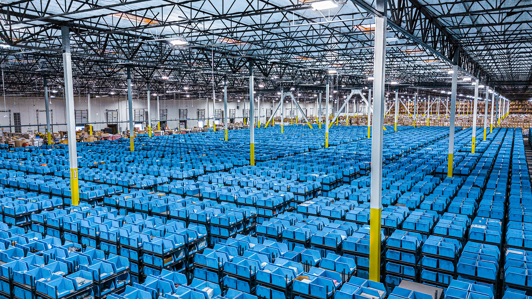 菜鸟洛杉矶仓正在作业的自动存储分拣区