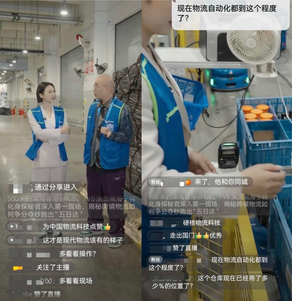 今天,菜鸟开启了一场持续数小时的“云监工”慢直播,带全球观众走进菜鸟香港智慧港。全球货运量第一的香港国际机场智慧物流枢纽,首次以沉浸式直播形式呈现在公众眼前,吸引了来自美国、英国、新加坡等多个国家和地区的几十万网友在线围观。香港TVB 艺人高海宁也作为特邀探秘官参与直播,亲身体验无人物流的高效运转,揭开国货出海“五日达”背后的提速密码。