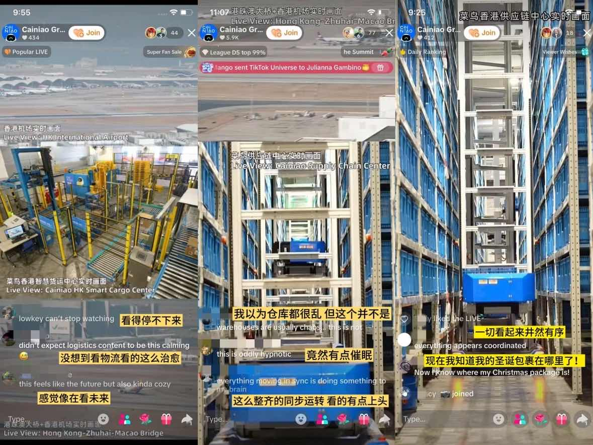 中国网友则更多表达自豪感。当直播介绍到,这整套自动化与数字化物流系统均由菜鸟自主研发,并已在全球 20 多个国家和地区落地应用时,直播间被“国货出海争气了”“为中国物流科技点赞”等留言刷屏。对许多观众而言,这场直播不仅是一次“看包裹”的过程,也让国货出海背后的物流与科技能力变得更加直观可感。