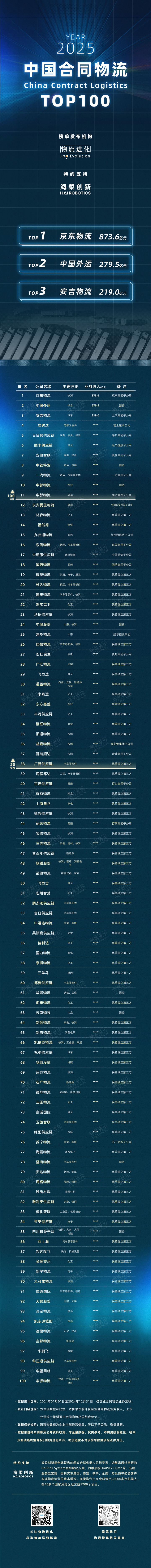 《2025中国合同物流100强排行榜》正式发布。这是物流进化继今年5月份发布《2025中国零担物流排行榜》后的第二个系列榜单。