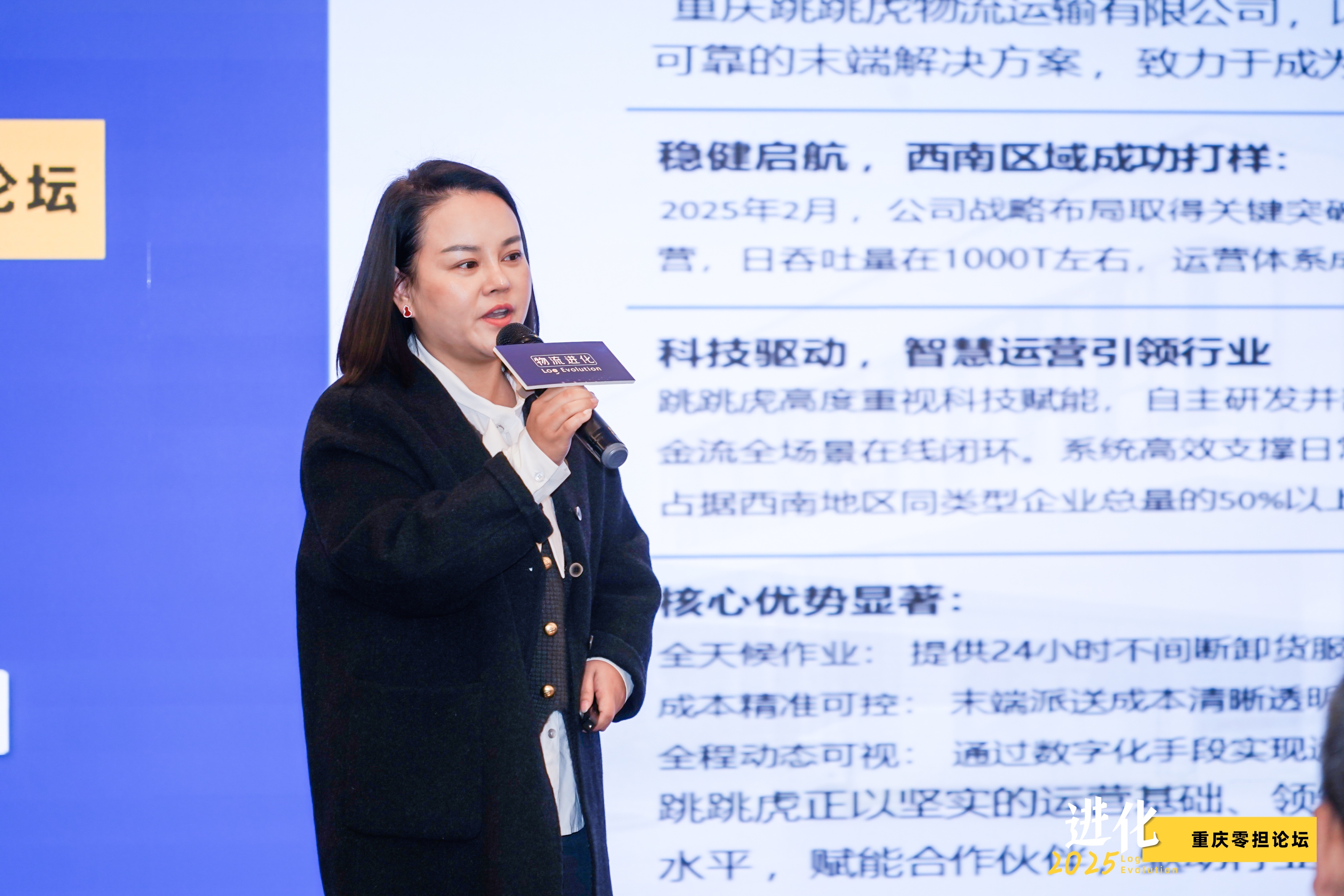 因此,跳跳虎总经理杨丽开始专注末端创新。整个落地配市场,过去传统夫妻档、直营模式下存在服务参差不齐、成本不透明等痛点。跳跳虎则通过24小时分拨、直配的模式,帮助专线客户做到“个性化输入-标准化输出”的模式,从时效、服务、成本多维度赋能客户,目前跳跳虎已经与60多家专线企业稳定合作,日吞吐量超1000吨。