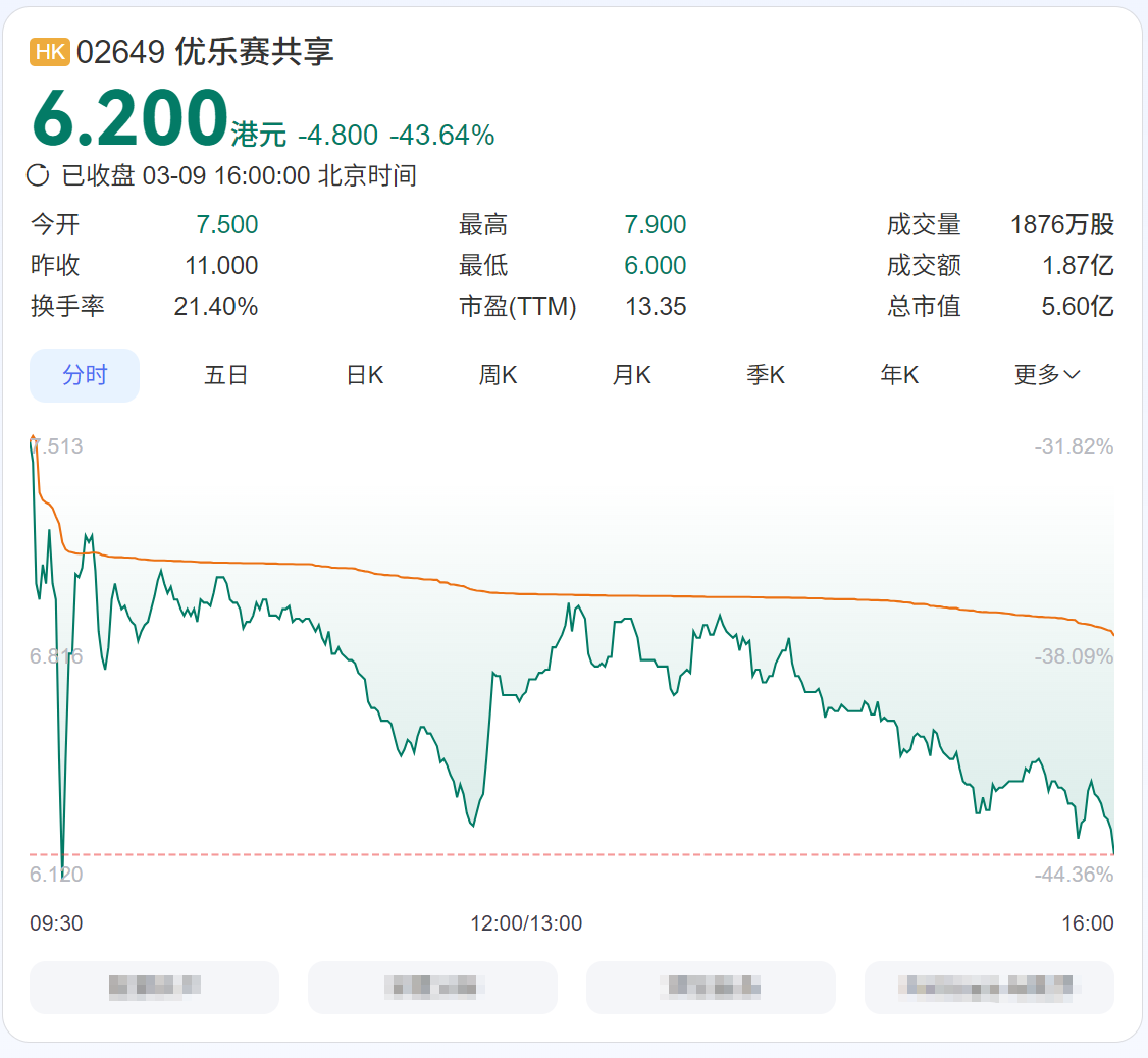 市值缩水至仅5.6亿港元。这一数字在残酷的港股市场,意味着优乐赛一登场,便一只脚踏入了“仙股”边缘。