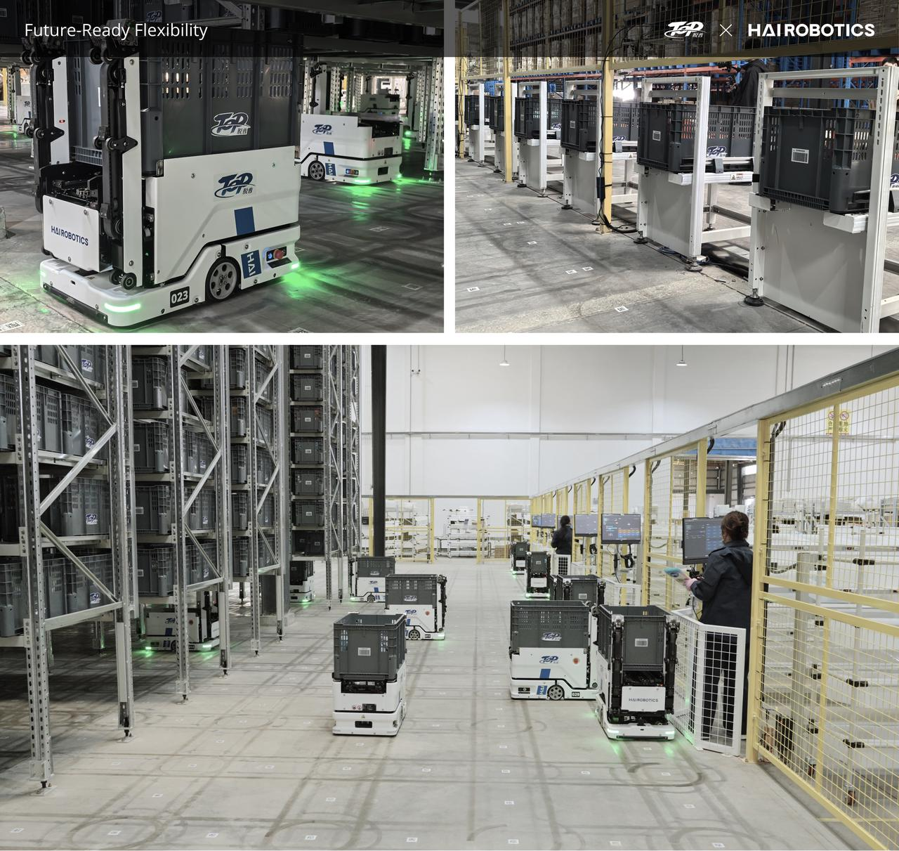 依托海柔创新智能系统与闪攀机器人协同作业,脱普供应链科技鄂州基地仓实现日均35000单的高效履约。